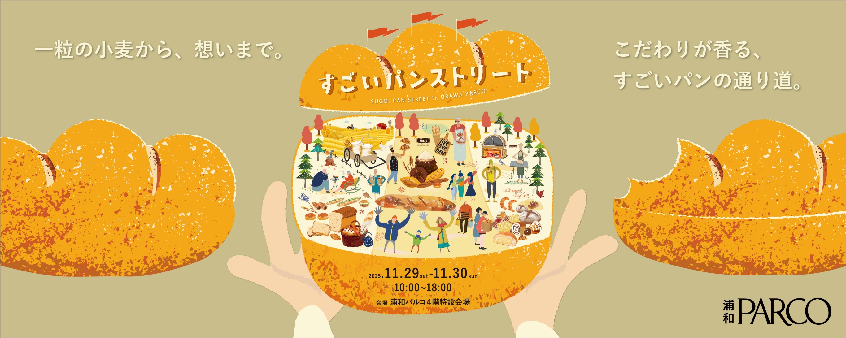 一粒の小麦から生まれる、職人たちのこだわりのパン。 手間ひまを惜しまない“すごいパン”が、浦和PARCOのストリートに勢ぞろいします。 香ばしい香りと笑顔があふれる2日間。 あなたの“お気に入りのひとつ”を見つけに来ませんか。