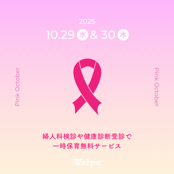 上記期間中、Welpa浦和内クリニックにて下記の各種検診・健康診断を受診される方には、先着で受診当日の一時保育料を無料サービスします。