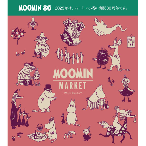 ムーミン谷に暮らす個性的な住人たちがキービジュアルになったムーミンマーケット限定アイテムや80周年アイテムなど様々なアイテムが勢ぞろい!