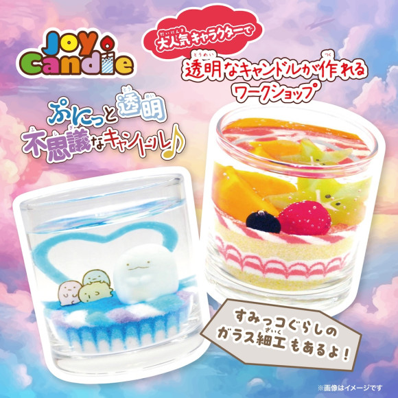 グラスの中に色鮮やかな砂を敷き詰めてお好きなガラス細工を配置すれば、世界に一つだけのキャンドルが完成!
