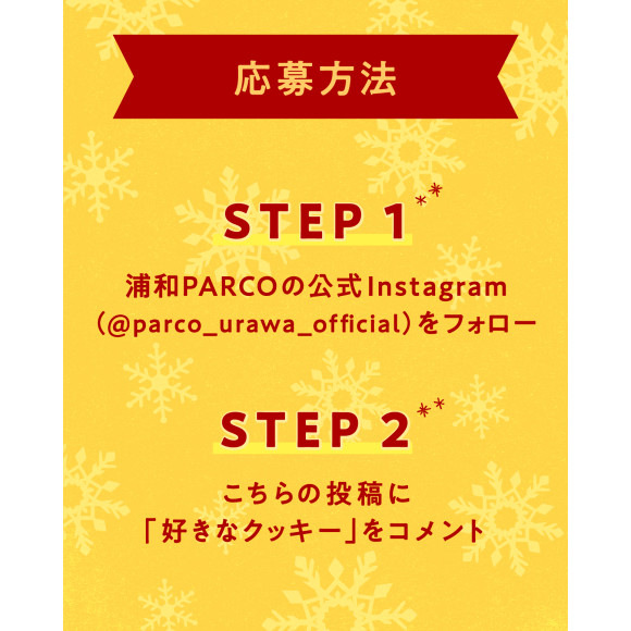 キャンペーン期間中、浦和PARCO公式Instagramをフォロー&コメントした方の中から抽選で10名様にステラおばさんのクッキー『ウォームハート(L)』[58枚入り]をプレゼントいたします。