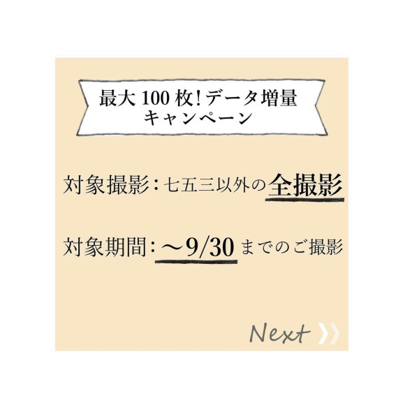最大100枚のデータをお渡しできるお得な期間。