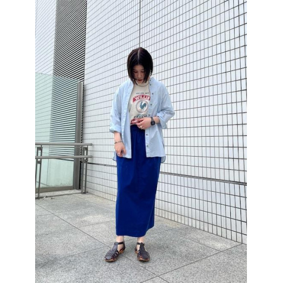パッと目が覚めるようなブルーのスカートは 製品染のオリジナルカラーです。 ワイドすぎず、タイトすぎずなシルエット。 裏地なしでも透け感のない生地は 夏に嬉しいポイントが詰まっています! 同じ生地でパンツもご用意してますので、 パンツ派な方にはそちらもオススメです。
