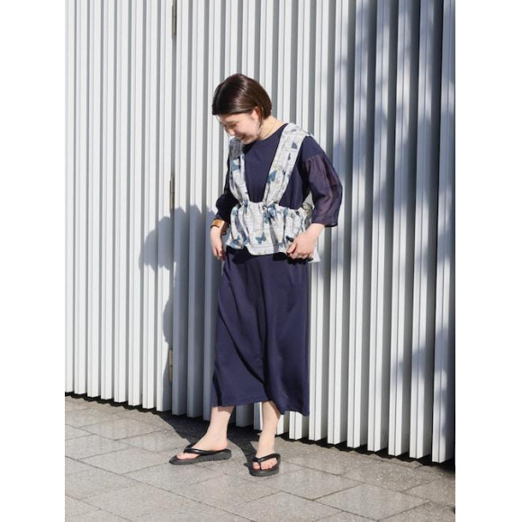 シアースリーブのワンピースは、 身頃は伸縮性のあるポンチ素材なので華やかさもありつつ、リラックスした着心地です。 アクセサリーやシューズをキレイめにしてオケージョン用としても着られそうですが、 普段使いするならベストやパンツと合わせてカジュアルダウンするのもオススメです。