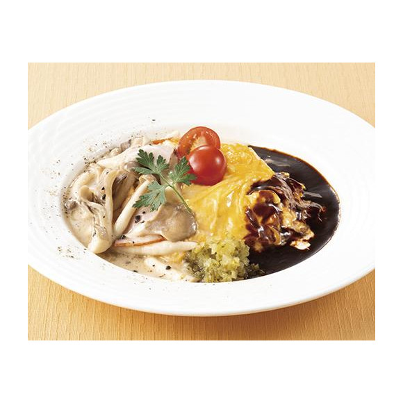 ハーフ&ハーフオムライス(きのこたっぷりクリーム&デミソース) 税込1705円