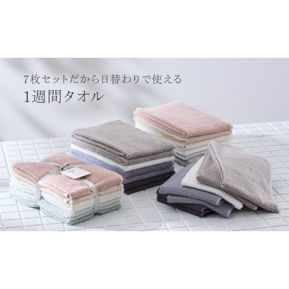 日替わりで使える7枚セットのフェイスタオル。