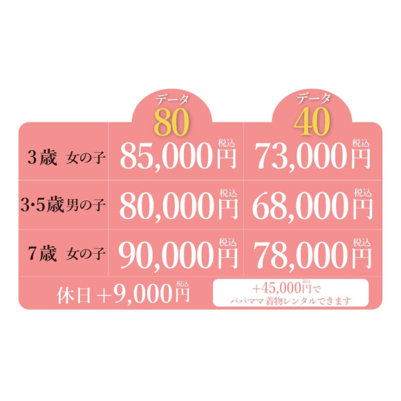 ¥45,000 (休日料金¥5,000)+ アイテム選択