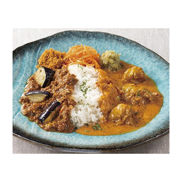 一皿で2種類のカリーが楽しめるハーフ&ハーフ♪(チキンティッカ&キーマ)