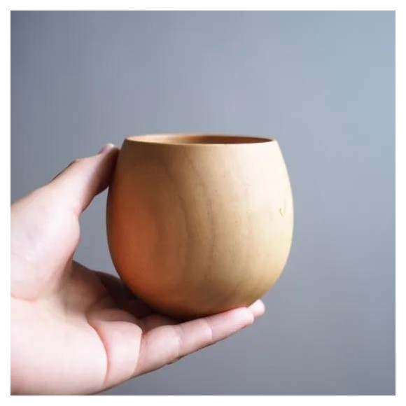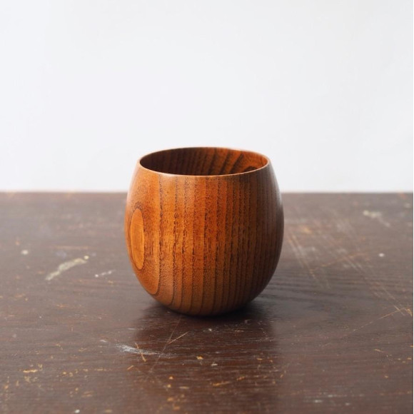 コロンとした丸いフォルムがまるで卵のような形の木製カップです。