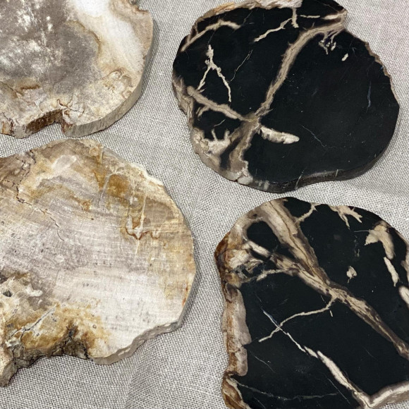 圧力によって化石化したという珪化木)を使用したコースターです。