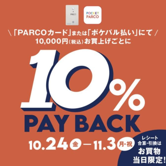 また同期間中、PARCO10%PAYBACKキャンペーンも開催しております!