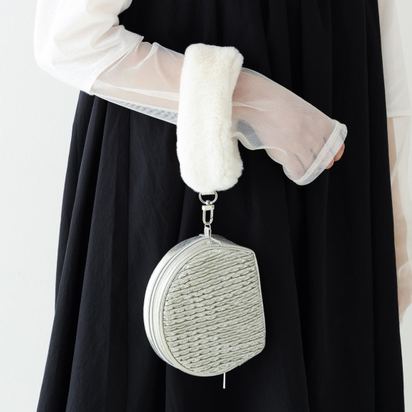 取り外し可能なファーのハンドル付きだから、そのまま持ち運べて、ちょっとしたパーティーシーンにもお使いいただけます。