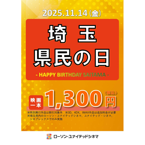 11月14日(金)『埼玉県民の日』映画1本 1300円!!