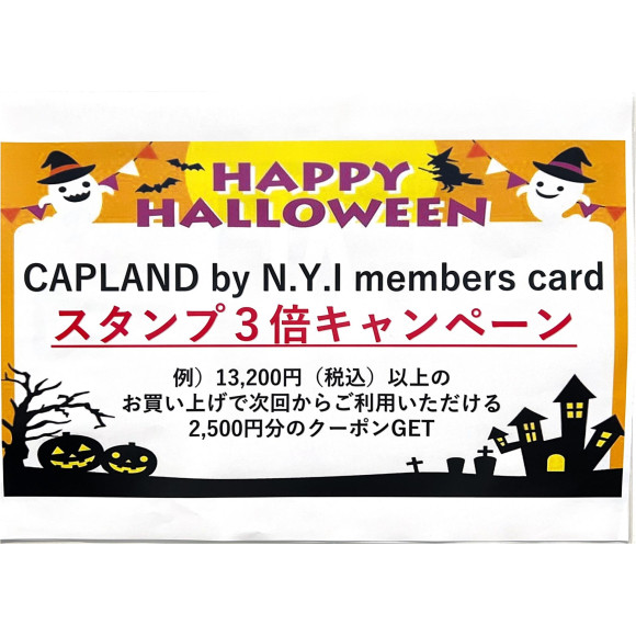 只今CAPLAND by N.Y.Iではメンバーズカードのスタンプ3倍キャンペーンを実施しております!