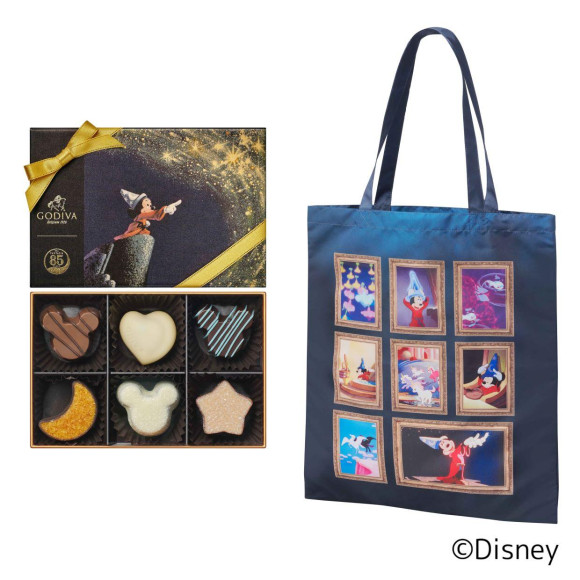 『ファンタジア』の1シーンをデザインしたパッケージに、ミッキーアイコンをかたどった3種類の限定チョコレートと、星や月の形のチョコレートなどを詰め合わせました。