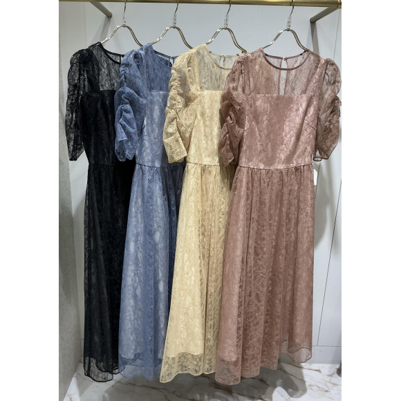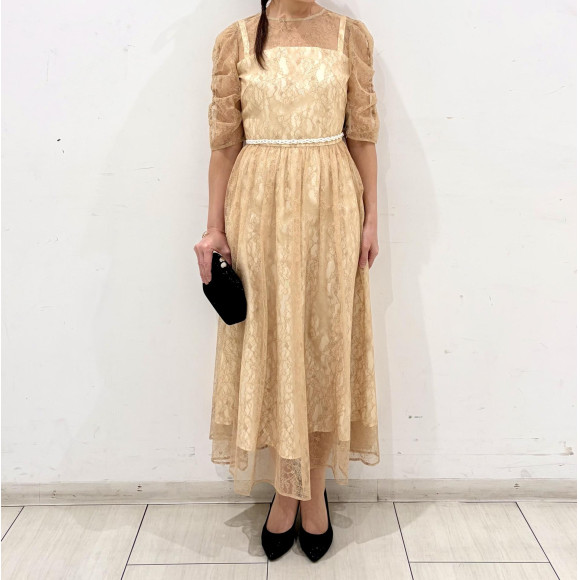 繊細なフラワーレースにシルバーラメ糸をミックスした華やかな印象のこちらのドレス☺︎