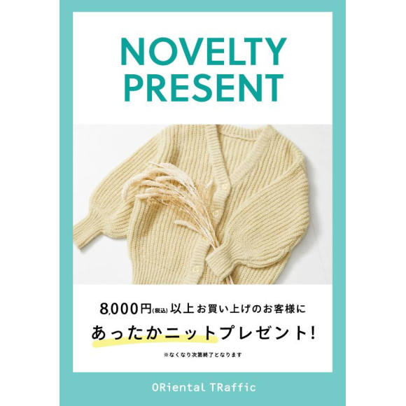 ☆¥8000(税込)以上お買い上げでニットプレゼント☆