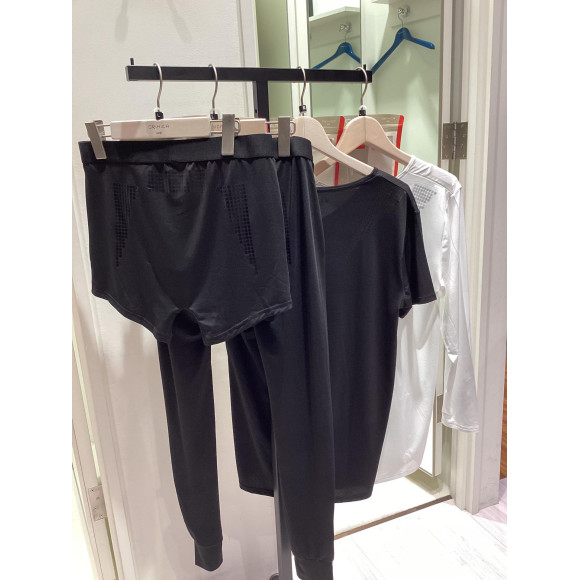 九分袖、半袖、ボクサーパンツ、レギンスの4型(それぞれ¥3,990(¥税込¥4,389))ご用意しております。
