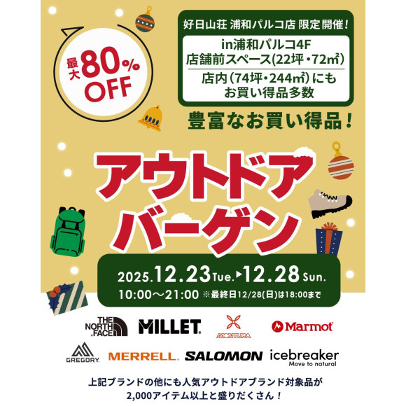 《予告》12/23㈫~12/28㈰までアウトドアバーゲン開催!