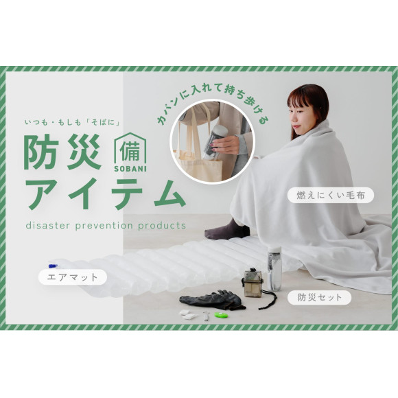 今回は、ひとつ持っておきたい「防災コンパクトセット」をはじめ、水が使えないときに便利な「防災衛生グッズ」や、非常時の防寒対策と休息に役立つ「防災寝具」まで幅広くラインアップ。