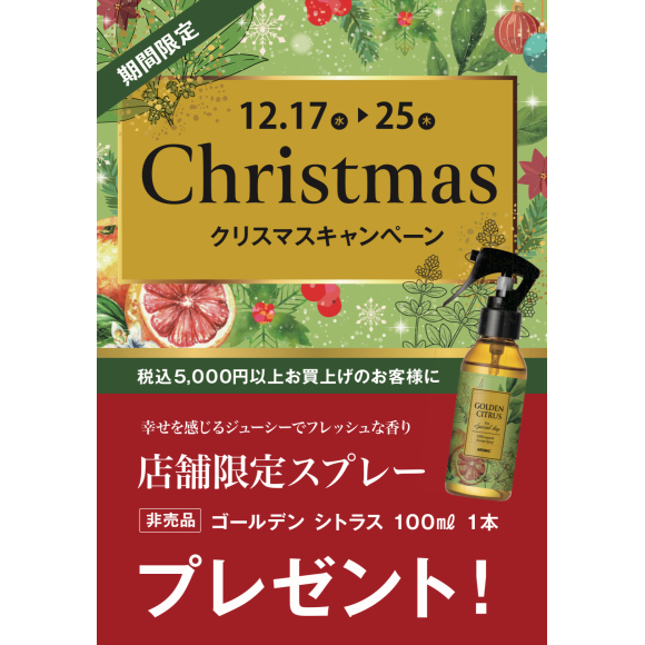 店舗限定アロマスプレー「ゴールデン シトラス(100ml)」を1本プレゼントキャンペーン