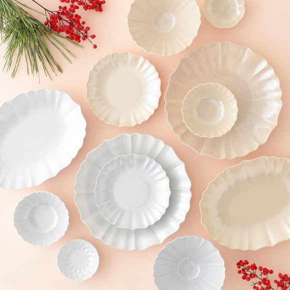 お花のような形状と煌びやかな結晶釉薬が食卓を華やかにしてくれます。