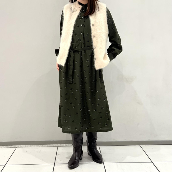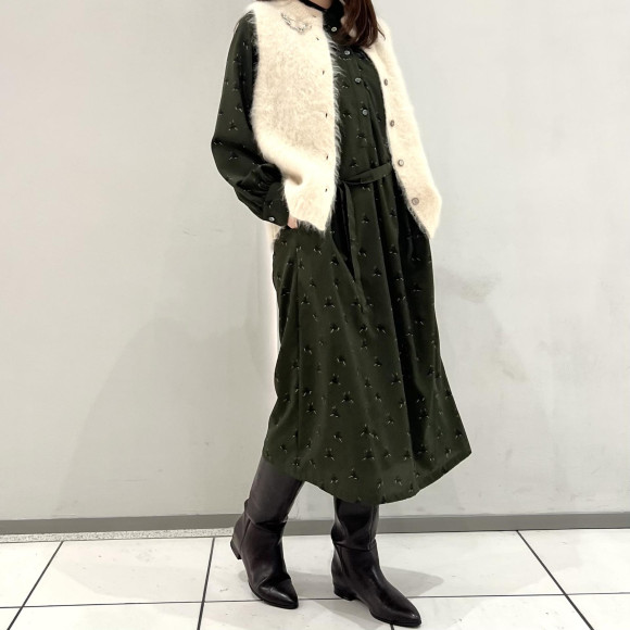 深めのグリーンがきれいで、上品に着れる一枚。
