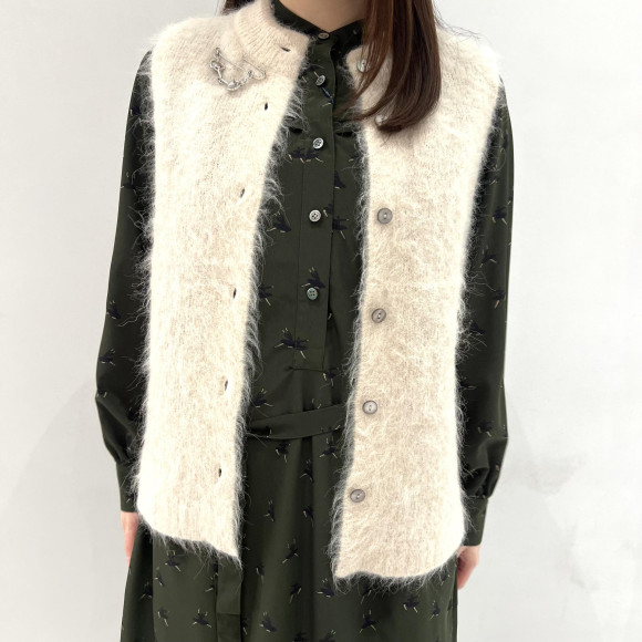 アルパカ素材のベストにロングブーツを