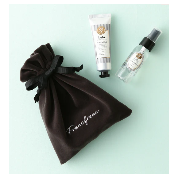 Francfrancらしい巾着がかわいいハンドクリームとボディミストのギフトセットです。