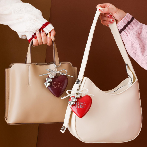 カラビナが付いているので、大きなハートのチャームとしてカバンに付けられ、開けるとミラーやブラシがセットになっているので、外でさっとリップや髪の毛を直したい時に便利です。