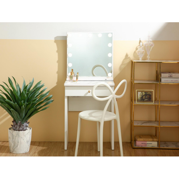しっかりとした高さのある大型ミラーなので、お顔全体のバランスやヘアスタイルとのバランスがとれてメイクを美しく仕上げることができます。