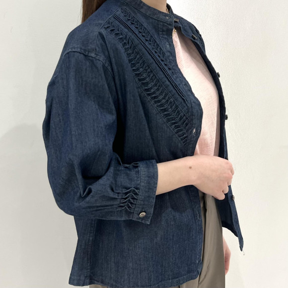 ねじりピンタックデニム スタンドショートシャツ