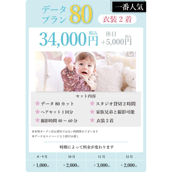 データ80プラン ¥34,000(休日+¥5,000)