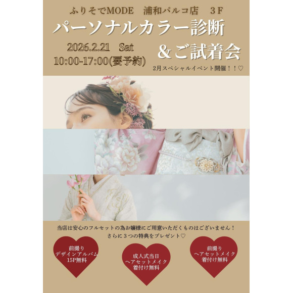 ふりそでMODE浦和パルコ店では2/21にスペシャルイベント!パーソナルカラー診断を開催いたします!!!