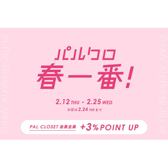 2月12日(木)0:00~2月25日(水)23:59の期間(※)、パルグループの各店舗&パルクローゼットオンラインストアにて『2026 パルクロ春一番』を開催します。