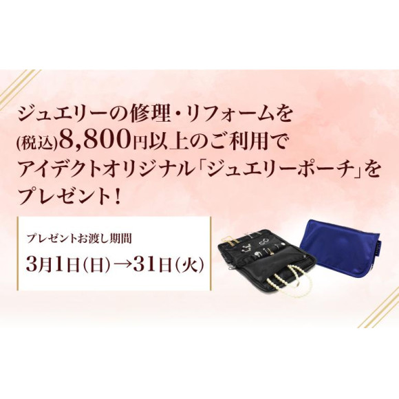 ジュエリーの修理・リフォームを8,800円以上(税込)のご利用でアイデクトオリジナル「ジュエリーポーチ」をプレゼント♡