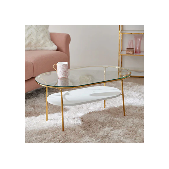 ゴールドのフレームと大理石調の棚板が美しく調和し、リビングに上質なアクセントを加えます。