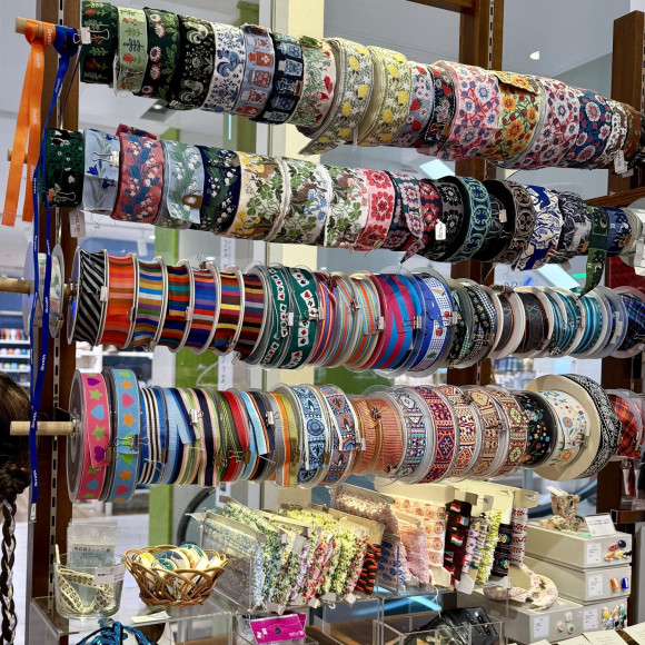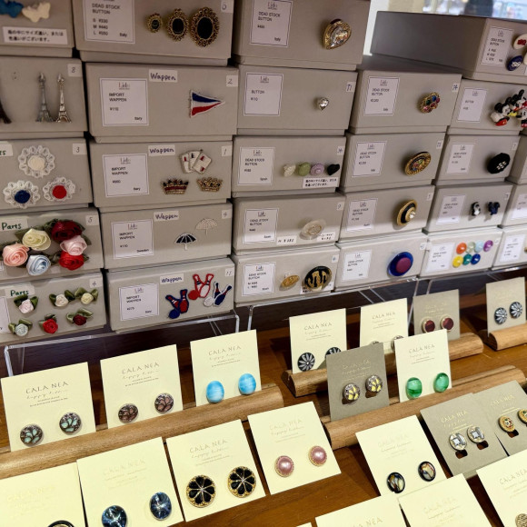 ボタンやワッペン、リボンなどの手芸用品を中心に、通常よりも豊富なラインアップで展開中です。