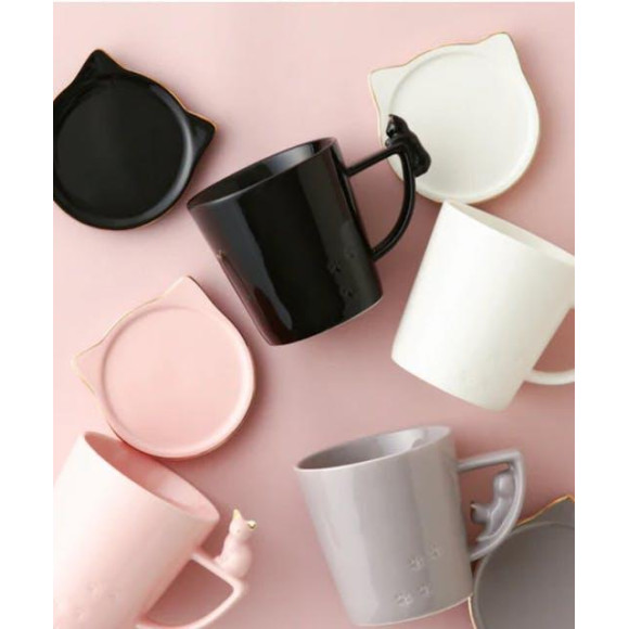 猫の顔型の蓋がついていて、ティーバッグを乗せたりコースターとしてもお使いいただけます。