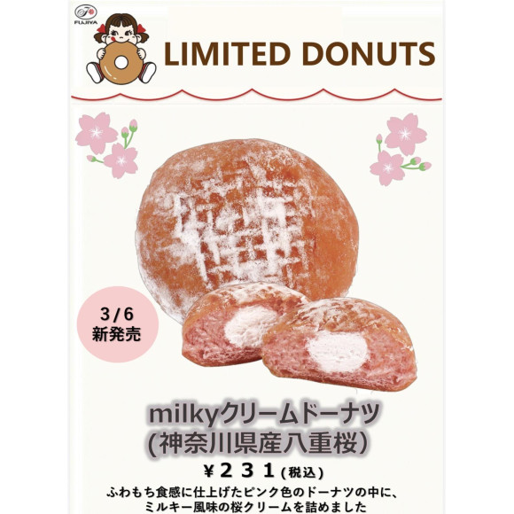 ふわもち食感に仕上げたピンク色のドーナツの中に、ミルキー風味の桜クリームを詰めました!