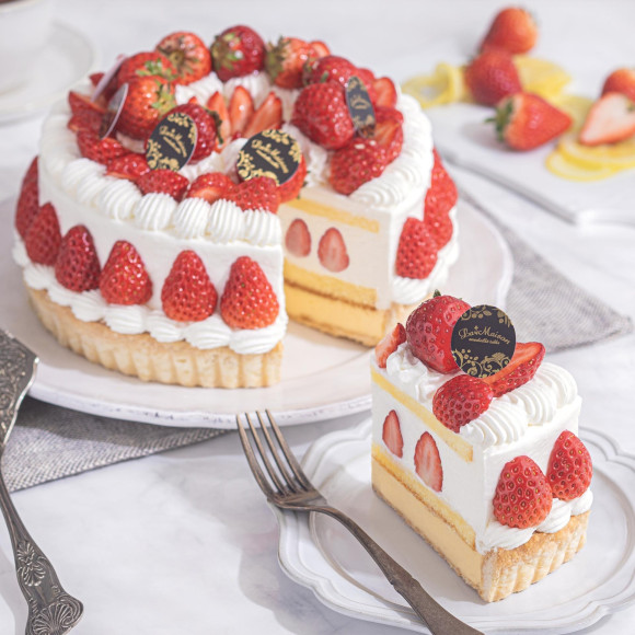 ほっぺがおちるような美味しさの「紅ほっぺ」いちごを使用した贅沢なショートケーキタルト。いちごを丸ごとふわふわなスポンジとなめらかなホイップクリームで包み込み、アクセントに瀬戸内レモンペーストをしのばせました、