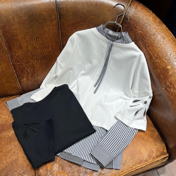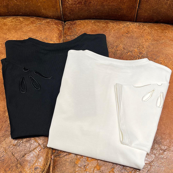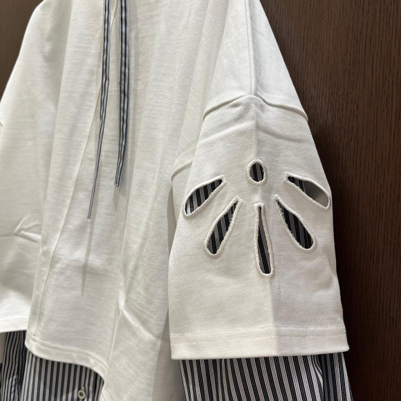 ソフトコンパクト天竺 袖カットワークプルオーバー