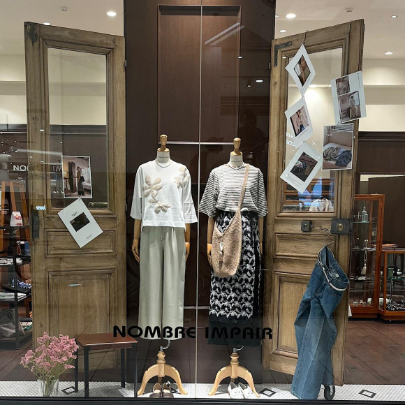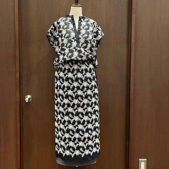 モノトーンフラワー刺繍 フレンチブラウス&レイヤードスカートのご紹介です。