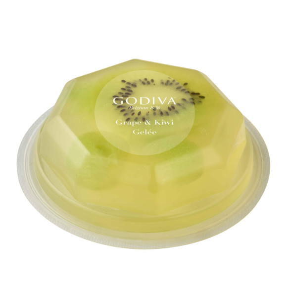 カカオの白い果肉の部分を使用したカカオフルーツの爽やかな味わいのジュレに、ぶどうとキウイを合わせました。