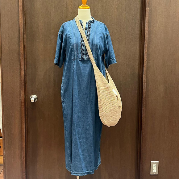 動きやすく着心地の良いデニムワンピースは、フロントに施したねじりピンタックがポイント!