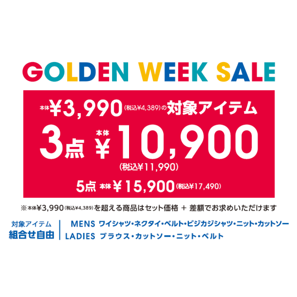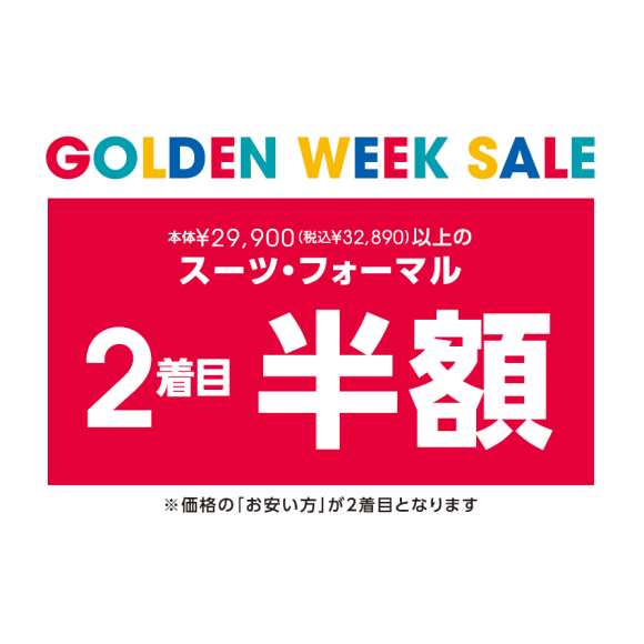 ¥29,900(税込¥32,890)以上の商品が2着目半額